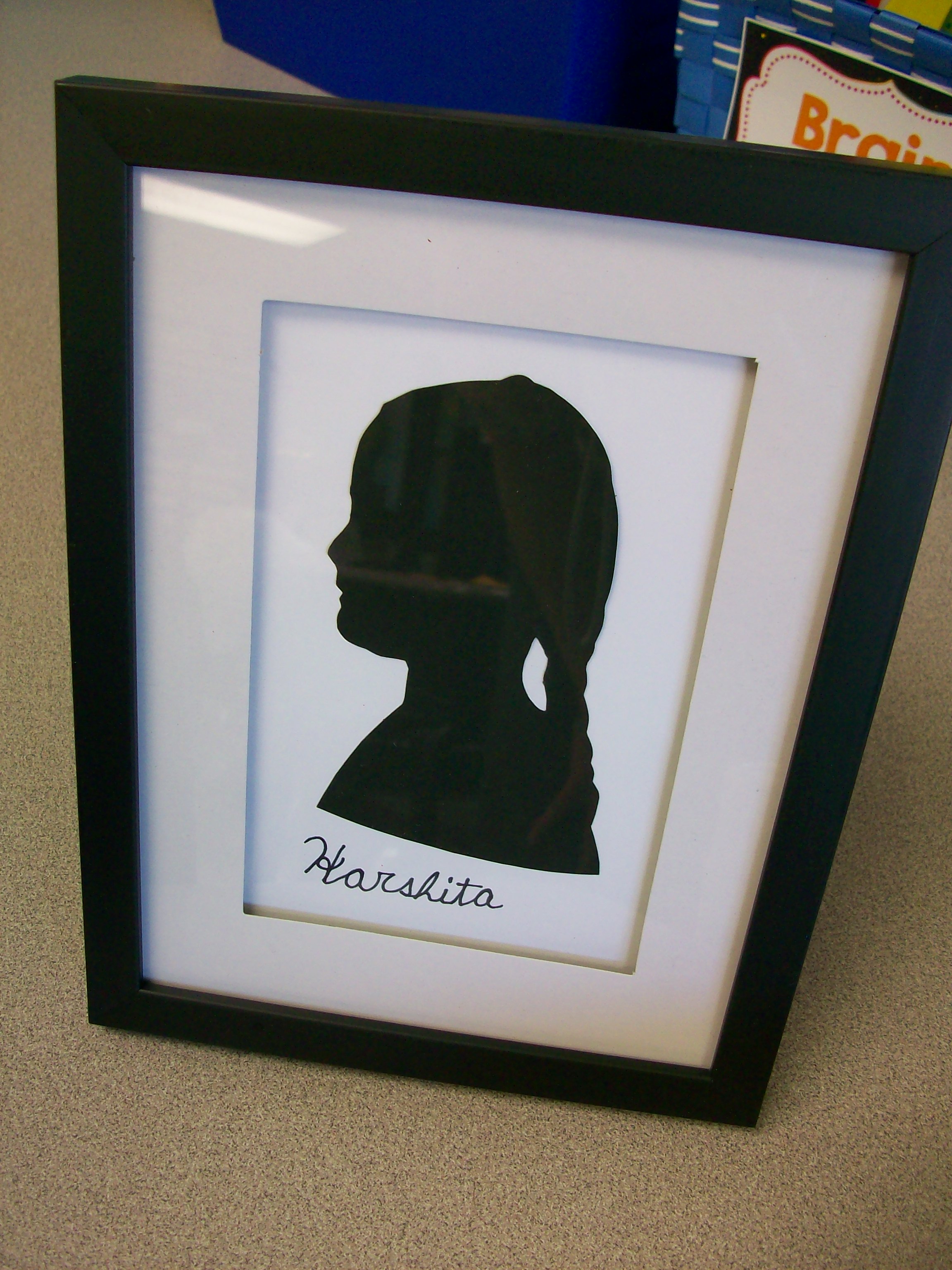 This is definitely my most favorite Mother’s Day project! To be upfront, it takes a lot of work on the part of the teacher. Essentially, you need to take a profile pic of every student, resize, print, cutout against black cardstock with super fine-point scissors, (kids gluestick the image on white cardstock and write their names in cursive with a very fine black Sharpie below), open and clean packaged frames, frame each silhouette, (kids wrap and make the card). Like I said, LOTS of work for the teacher. However, the magic is worth the time and effort. I mean, these silhouettes look JUST like each kid!. After I cut them out of the black paper, I use my document camera and play a guessing game with the class. They can call out the name of the classmate in three seconds on less every time. So fun!