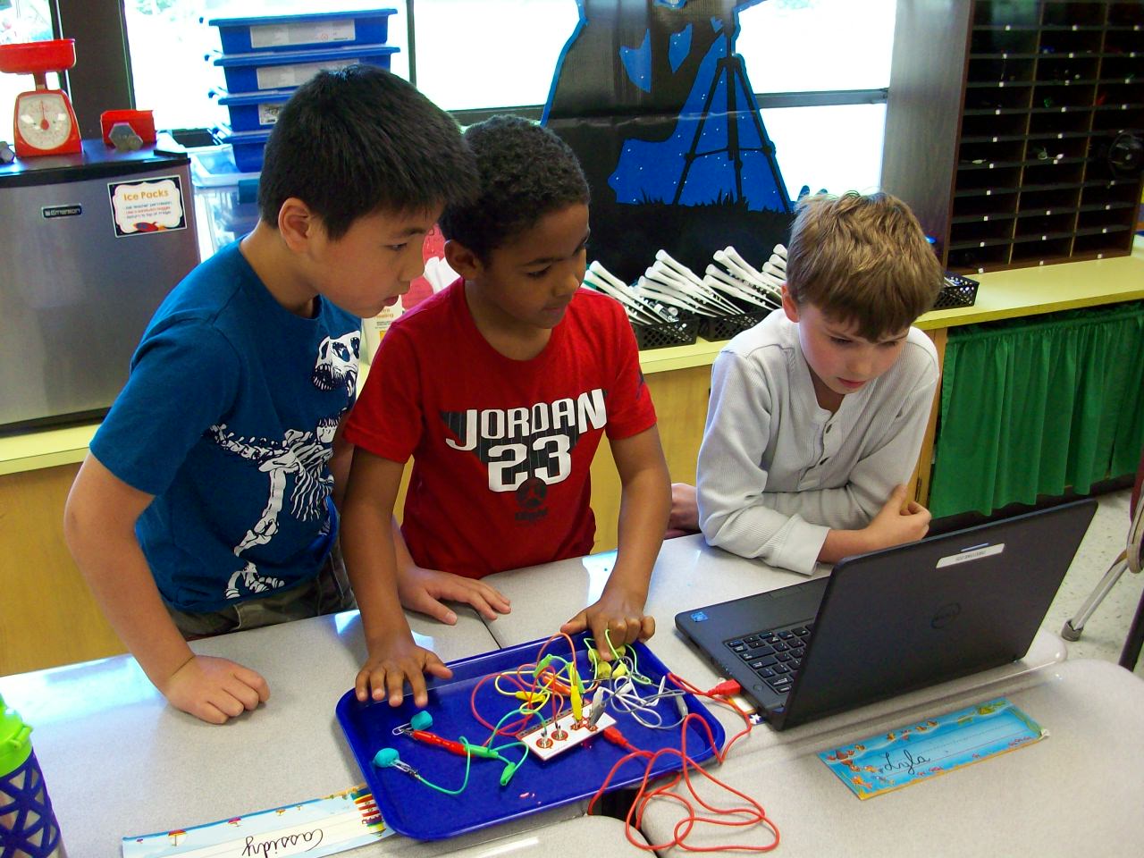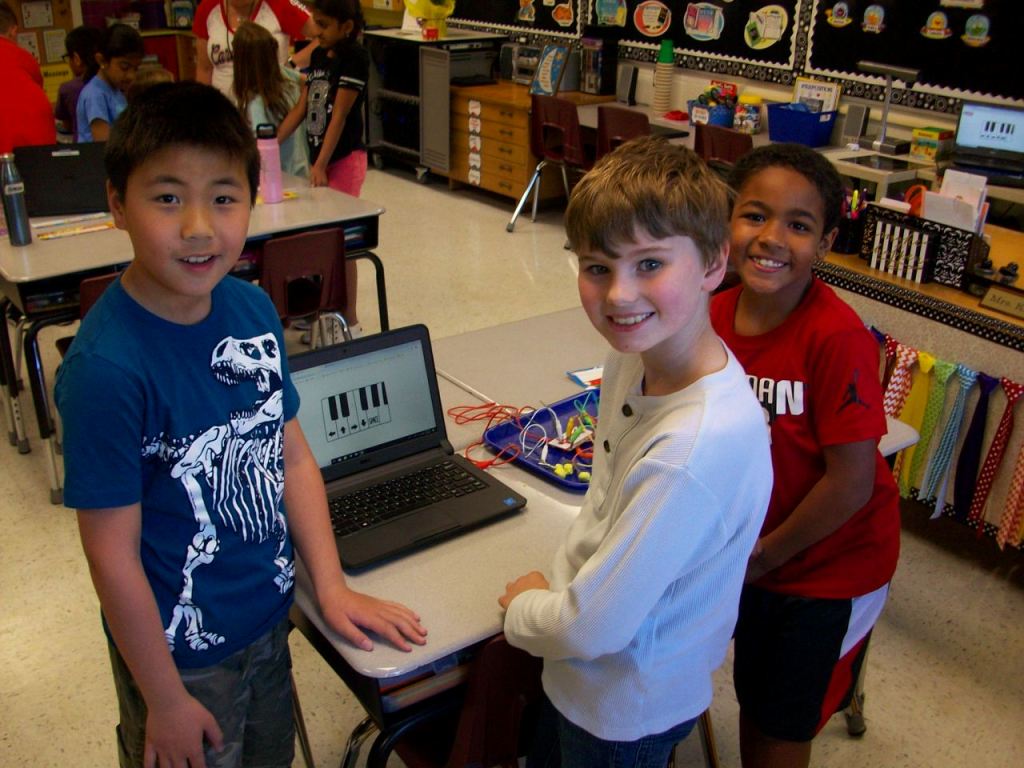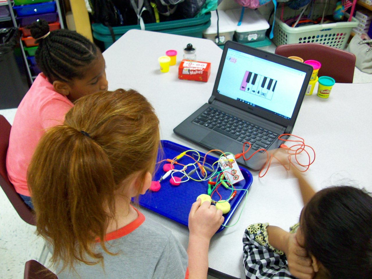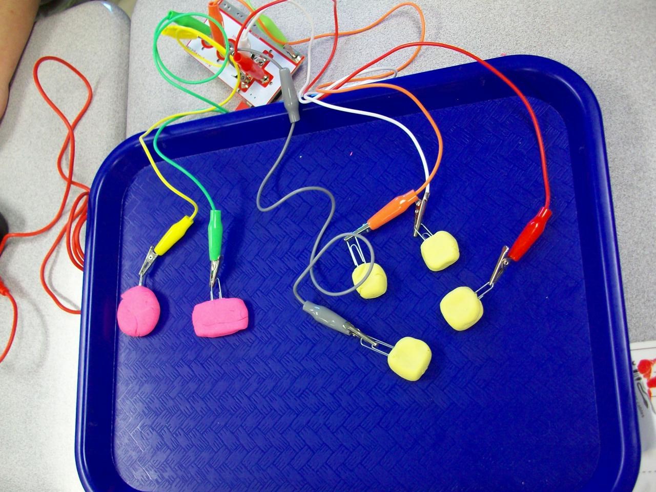 Makey Makey is the coolest! The small box contains a motherboard, wires with alligator clips on either end, and a USB cord to connect a laptop. What’s so special about these materials? In the right configuration with conductive materials (Playdoh, bananas, etc.), you can take over control of the keyboard and mouse. I introduced the Makey Makey kits with a Mrs. Foley talent show performance. Act 1: Comedy. I made a SMART Notebook file with several banana jokes. Each time I delivered the punchline, I tapped the bananas I had attached to the hidden motherboard and the bongo app I had opened played my “bu-dum-dum” rhythm. The kids saw me tap the bananas, but heard a bongo. They were confused. Seeing as how my jokes were sub par, I decided to up my game and impress the class with my classical music talents. Act 2: Piano. So I switched over to the piano app and played “Ode to Joy” on the bananas. Beautiful. Still, the kids were perplexed and I thought my performance needed to be more in line with their interests. Act 3: Video Game Master. So I pulled up the original Super Mario Bros. video game and attached a different motherboard with Playdoh chunks. Start game. Tap the Playdoh. Avoid the goombas, turtles, and ledges. Pass level 1. And soak up the cheers and laughter. This is when the class was fully on board. Because I had the motherboard and wires covered with a cloth, the kids didn’t understand what was happening. So when I revealed the devices, they were soooo curious and wanted to check it out themselves. Each team of 3 was given a box with the Makey materials, 2 containers of Playdoh, and paperclips (to keep the alligator clips from getting covered in the clay. (I opted not to give every group 5 bananas, but let them try out my set up.) They began with the bongo app and moved on to the piano app and eventually the Mario Bros. game. After the exploratory part, I asked the students to help explain how it all worked. It led into a fun discussion on electrical circuits and conductors. NOTE: The circuit only works if the “player” holds onto the “earth” alligator clip so the loop is complete. We had the best time and an hour passed in what seemed like seconds. The students were completely engaged and loved the fact that they played Super Mario Bros. at school! (I hope they explained the purpose to their parents when they boasted about their video game experience that night.)