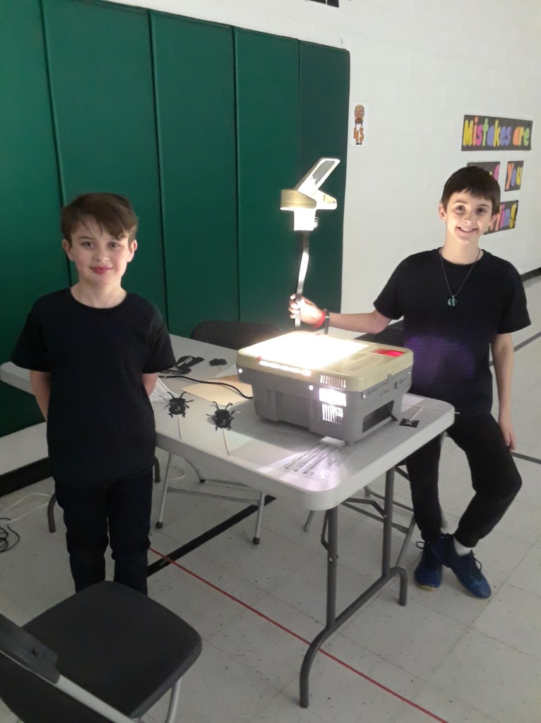 For the third year in a row, our students participated in an all-school novel study. This year’s title was Masterpiece by Elise Broach. For our opening assembly, the student body was introduced to the characters with a shadow puppet show. Yes! We amateurs pulled off a shadow puppet show of chapter 1 for 500 people. How did we do it? An old overhead projector, white sheet, greenscreen frame, and 2-D paper characters. And, of course, I had to add musical instrument sound effects! Another teacher and I hid behind the screen. I managed the puppets and she added the sounds–one for each character and others as needed. Other staff members joined in on the fun. Our librarian narrated the chapter and our art teacher painted an amazing owl (our mascot) in the style of Durer (the focus artist in the book). Following the assembly, Okie and a Marvin-style cart (the beetle in Masterpiece) made the rounds to each classroom to deliver a stack of novels, one for every student. Isn’t the teacher-created bookmark also adorable! Our team when all out again this year to get kids excited for the “One School, One Book” 5-week adventure.