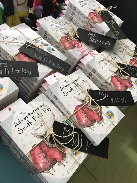 Our OSOB committee are creative rockstars! This was our second year participating in an all-school novel study. The Adventures of a South Pole Pig by Chris Kurtz is a sweet book about friendship and perseverance. With lush vocabulary, endearing characters, and an exciting locale (Antarctic), we had a winner. We kicked off the big event with a whole school assembly complete with a jumbo character puppet show of chapter 1 and a visit from Yukon Cornelius (ode to the Rudolph holiday cartoon). Once students return to their rooms, Yukon hauled the novel packages on his sled to every classroom.