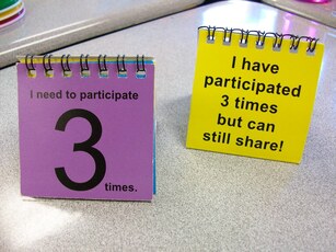 Who else has the same 3 to 5 students doing ALL the participating in a lesson? This was a problem I struggled with for a long time. I tried to give wait time, encourage new voices, include think-pair-share, and a variety of other strategies. When I came across these little flip charts at ReallyGoodStuff.com, I wanted to give them a try. Students place these on their desktops with one side facing me and one side facing them. Each time an individual participates (volunteers), he/she can flip a page and change the 3 into a 2, or the 2 into a 1, or the 1 into a 0! I set a goal of reaching 0 by lunchtime. While it hasn’t been a magical tool that has everyone participating, it certainly has encouraged many more students to get involved. I have students store these away in their math folders before we head to lunch and have been able to keep them in good enough shape to reuse for 3 years. These participation flip charts really help me as a teacher make sure I am calling on a variety of students and reflecting on why others may be more reluctant. It’s a great tool!