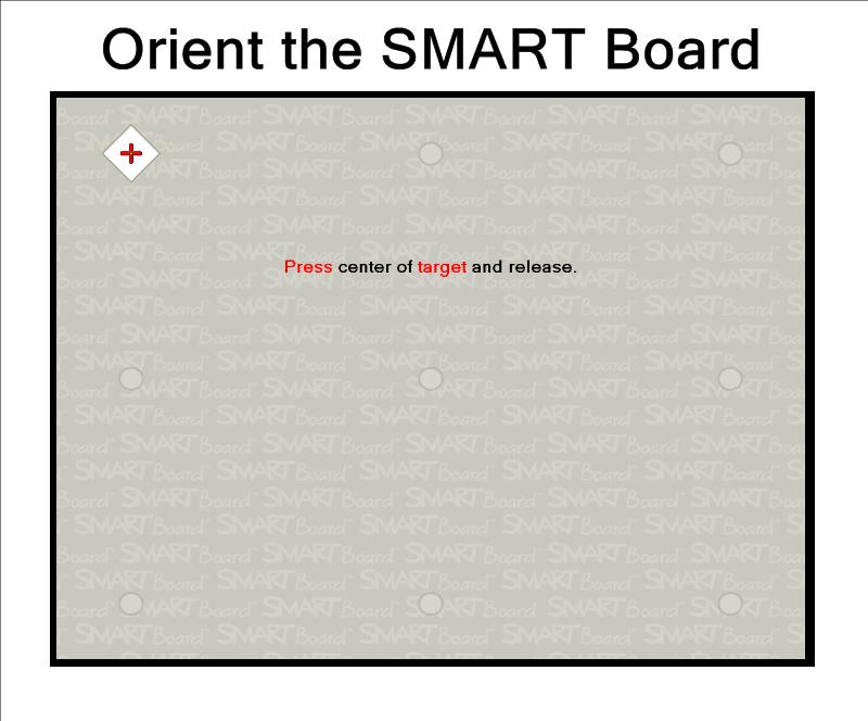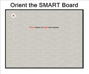 This process of orienting the screen will tell your computer where the projected image is located on the SMART Board™. I recommend orienting your board at the beginning of each school week. Some boards are mounted in an area of the school building that has more movement on the floor or roof above, which will cause the projector to become out of alignment from time to time. You can orient your board even in the middle of a lesson if you notice your point of touch is off. It will only take 10 seconds.